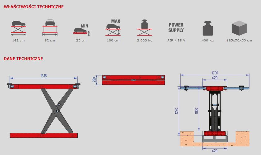 Podnośnik nożycowy do karoserii samochodowych PrepLIFT Astra